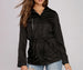 Take on whatever comes your way in this essential jacket to create chic layers! The jacket features a zippered down front. a small zippered pocket. a drawstring waist. a hood. side pockets and long sleeves.