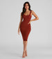 Take the plunge in this stylish midi sweater dress! The dress features a sleeveless scoop neckline. tank shoulder straps. and a bodycon silhouette on rib-knit fabric. Complete the look with mules.