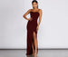 Keep it timelessly elegant in our breathtaking Tamara dress! She features a sleeveless bodice. adjustable spaghetti straps. a cowl neckline. and padded cups. Her slim-fit bodice is accented with ruched detailing on the left side and leads to a curve-hugging floor-length silhouette accented with a high side slit. The dress is composed of a crepe fabric that offers a moderate stretch. Complete your look with rhinestone duster earrings and a sparkly clutch.
