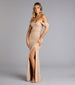 You'll be a notable sensation in the Tamara glitter formal dress at prom. banquets. or upscale birthdays! The textured glitter fabric and full-length knit lining provide the perfect blend of comfort and sophistication. She features a trendy off-the-shoulder sweetheart neckline. short-sleeve cuffs. a ruched bust with padded bra cups. and a mermaid silhouette that exudes elegance and support. while the high front slit adds a touch of glamour to her floor-length hem. Complete the look with earrings and high heels!