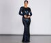 Catch the light and steal the spotlight in our shimmering sequined Teddi gown! She features all-over sequin embellishment atop a mesh underlay. a round neckline with back zip and hook-and-eye closure. long sleeves. and a long. slim-line skirt. Teddi is fully lined and has a bodycon construction. She's made from woven and mesh materials with minimal stretch.