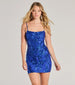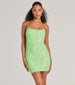 The sequin dress features a flattering square neckline. adjustable spaghetti straps. a cutout back that attracts attention. and a bodycon mini-length silhouette. This dress is perfect for a school dance or party.
