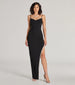 The Teigen embodies true sophistication with a flattering slim fit silhouette and a dazzling rhinestone embellished trim along the high side slit. Perfect for styling with stiletto heels.