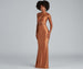 Step out like the main character you are in a dress that is a true one of a kind! Terra features a sleeveless sweetheart neckline. a metal O-ring at the center of the bodice. spaghetti straps. and a sexy cutout at the waist. The slim-fit waist leads to a curve-hugging mermaid silhouette. Terra is composed of a lined woven satin fabric that offers a slight stretch. Complete look with rhinestone heels and a faux fur wrap.Â