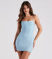 Their text can wait. You'll be too busy catching all the attention in this casual mini dress featuring a sleeveless square neck. bungee spaghetti straps. a strappy open-back. and a bodycon silhouette. The dress is composed of a texture knit fabric with a stretchy lining. Complete the look in a crop denim jacket.