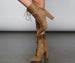 Lace up in booties that a major style moment! The booties feature a mid-calf fit. a lace-up front. a pointed toe. inner zipper closure. and a block heel. The booties are composed of a nylon-like material. Complete look with a sweater and skinny jeans.