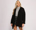 Layer up in a staple jacket that is perf enough to go with all your favorite casual outfits. The jacket features a collared neckline. long sleeves. a button-down front. two chest pockets with button closure. a removable tie waist belt. and a mid-thigh length. Complete look with a bodysuit and plaid skirt.Â