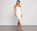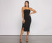 Step out in this staple dress to wear any day for any occasion! This midi dress is perfect for dressing up with heels to create a night out outfit or dressing down with sneakers for a casual coffee date. The dress features a sleek tube neckline and a midi length silhouette with a mini side slit.