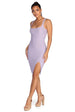 Take your look to the next level in this wowing bodycon dress! It features a spring ready lavender color. a square neckline. wide tank-like straps and a midi length skirt with a sexy high slit. Dress is composed of a textured knit fabric that offers a form hugging bodycon fit to showcase curves!