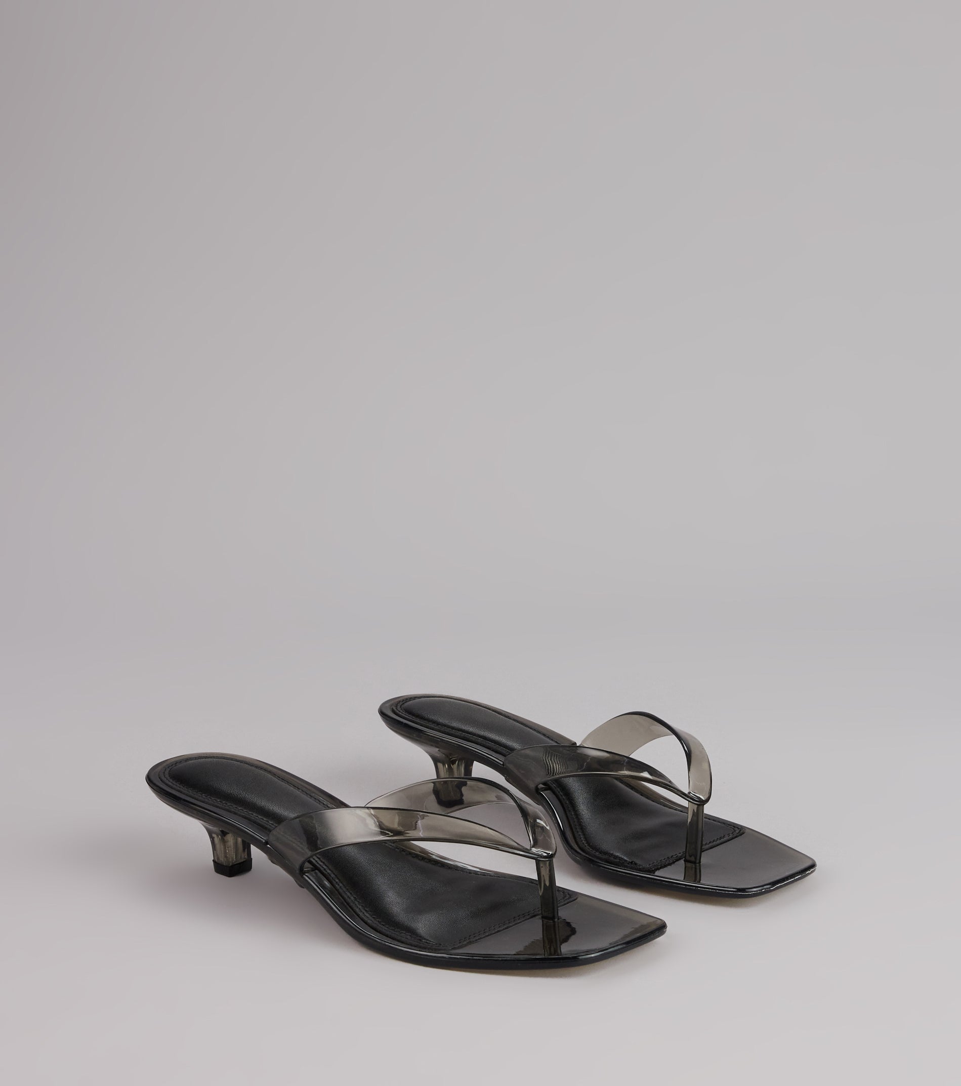 It's giving Y2K nostalgia with a grown-up twist—these jelly kitten heels are playful. comfy. and totally crush-worthy. The thong strap keeps it simple while the mini heel makes them an instant day-to-night fave.