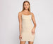 Get tied to basics in a ribbed mini dress that is oh too gorgeous! The dress features a scoop neckline. tie spaghetti straps. and composed of a ribbed knit fabric that hugs curves in all the right places. Complete your casually cute look with stud earrings and block heels.