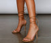 Channel bad girl vibes in this pair of stiletto heels! They feature an ankle lace-up detail. open toe. and a stiletto heel. Wear them with a leather skirt and bustier to meet the girls.