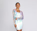 Party on till the break of dawn! This jacket is the epitome of fun. featuring an open design. long sleeves and a cropped hem. The star of the show is the shaggy style long sequins that twist and twirl with you as you dance the night away! Jacket is composed of a sheer mesh material that offers minimal stretch.
