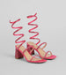 It's time for glamour with these rhinestone spiral heels that will sparkle with every step! They feature an open square-shaped toe. thin toe and foot straps. a thin spiral strap design that wraps around the leg. mini rhinestone embellishments. and a short block heel. The heels feature a sleek satin trim and a faux leather subtle cushioned insole. Style with a metallic clutch!