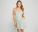 Shine on when the moment counts in this sparkling skater dress! The dress features a sleeveless V-neckline. spaghetti straps. a strappy back design. an empire waist. hidden side pockets. and a skater silhouette. The dress is composed of a glitter knit fabric that offers a form-hugging fit with a moderate stretch. Complete look with heels.Â