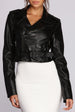 It's your time to slay in this fiercely on trend moto jacket! It features a collar with black stud detailing. an asymmetric zip front with zipper detailing along the sides. a front buttoned pocket. long sleeves. and a belted waist. The faux leather jacket features a chic all over snake print.