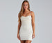 It's your time to sparkle in this mini dress for your next night out! It features a sleeveless cowl neckline. spaghetti straps. and a bodycon silhouette to flaunt your figure. The glitter knit-lined fabric offers a moderate stretch. Style this mini-length dress with a clutch for the perfect finishing touch.