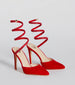 It's your time to strut and own the scene in these fab spiral strap stiletto pumps! They feature a closed pointed toe. an alluring spiral strap design that wraps around the leg embellished with sparkling rhinestones. and a sleek stiletto heel. Style these velvet pumps with an envelope clutch for your next night out.