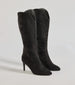 Walk tall in the time to strut under-the-knee stiletto boots. With faux suede. a pointed toe. and a chic curved top. these boots are your go-to for fierce vibes and endless confidence.