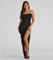 Bring the allure in this one-shoulder maxi dress featuring a sleeveless bodice. a single spaghetti strap. and a form-hugging silhouette atop an asymmetrical slit hem with a timeless twist accent. Complete the look in dangly earrings and heels.