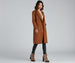 Keep it timelessly chic with a trench coat that layers over your sophisticated outfits. The trench features a collared neckline with lapels. long sleeves. a double-breasted button closure. hidden front pockets. and a longline hem. The coat is composed of a lined faux wool fabric that offers a relaxed fit with minimal stretch. Complete look with thigh-high boots.Â