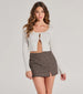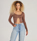 A long sleeve rib knit crop top boasts a scoop neckline with dual hook-eye closures and a center slit design to flaunt skin. Style with a mini skirt for going out.