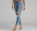 The Tobi super high-rise mom jeans are the perfect denim fit to create any trending looks for the season. These high-rise jeans feature a five-button fly. distressed details on the front. and a skinny-leg fit. The fabric has minimal stretch and is finished with a medium wash for an iconic denim look. Style these trendy mom jeans with a sleek bodysuit or cropped knit tee for a casually chic ensemble.