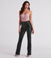 You'll be too cool in these coated faux leather pants that flaunt your edgy-fashionista style! They feature a high-rise faux belted waist. belt loop accents. pintuck seams down the front. and a straight-leg silhouette. Style with a turtleneck bodysuit and heels to complete the look!