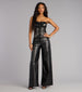 Your “don't mess with me” pants—sleek. sculpting. and effortlessly cool. These faux leather wide-leg pants bring major attitude with a high-rise fit that snatches the waist and elongates the leg. Dress them up. tone them down. they always deliver main character polish (without saying it).