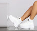 You'll be looking so fab in these platform sneakers that keep your look on point! The sneakers feature a mid-calf fit. a lace-up front. an almond toe. and a textured platform sole. The sneakers are composed of a faux leather material. Complete your look with biker shorts and a tie front top.