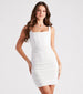 You'll radiate bombshell energy in this chic mini dress! It features a sleeveless square neckline. tank shoulder straps. a corset-designed bodice with structured boning at the bust. ruching down the side seams. and a short. curve-hugging silhouette. Style with fringe earrings and stiletto heels.