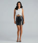 Radiate total glam girl energy in this fabulous rhinestone fringe mini skirt! It features a high-rise waist with a back zipper closure. a mini-length hem with a high-cut front slit with a sparkling rhinestone fringe trim. and a form-hugging fit. Style this faux leather skirt with a bustier top and strappy heels!