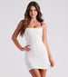 This chic curve-hugging mini dress is totally your vibe! It features a sleeveless square neckline. spaghetti straps with chunky chain-link accents. a mini-length hem. and a bodycon silhouette. The textured knit fabric offers plenty of stretch. Style with strappy stilettos for your next club outing!