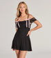Treasured Poise Cold-Shoulder Bow A-Line Mini Dress