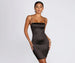 Treat yourself! That's our motto. This sweet mini features a square neckline. and spaghetti straps that lead to a square back. Dress has a form fitting silhouette and a hem that hits mid thigh. Composed of a satin material that offers slight stretch and adorned in heat stones that reflect when they catch the light!