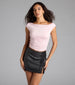 You'll be the one everyone's talking about in this faux leather micro skirt with a pretty lace trim. form-hugging fit. and a flirty slit. Pair with a cute top for a date night!