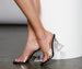 Clearly you'll be a trendsetting diva with these chic mules! They feature an open square-shaped toe. a wide clear strap. and a clear pyramid heel for an elevated vibe. Style these mules with your fave clutch.