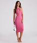 You'll be such a trendy babe in this adorable cutout sweater dress! Featuring a sleeveless high neckline with a racerback design. a front keyhole cutout at the bust. alluring side cutouts at the waist. a midi-length hem. and a curve-hugging silhouette. this dress is a perfect pick for a night out with the girls. Style with platform heels and a chic handbag.