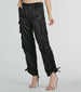 These fab satin cargo pants were made for a trendy babe like you! Designed with a sleek satin fabric. they feature a high-rise waist. dual front and back pockets. dual flap pockets at each side. ruched detailing at the hem with adjustable ankle drawstrings creating a tapered fit. and a relaxed silhouette. Style these cargo pants with a corset top and clear heels for a rooftop bar.