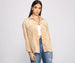 Layer on this corduroy shacket to give your look a trendy vibe. It features a collared neckline. long sleeves with single buttons to cuff. a complete button-down front. buttoned chest pockets. and a relaxed fit with frayed hems. Pair this shacket over a casual dress and accessorize with gold hoop earrings.
