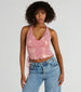 This metallic knit halter top will bring the trendy energy to your next club night! Designed with a foiled slinky knit fabric with plenty of stretch. this top radiates a fab metallic sheen to catch all the glances. It features a sleeveless cowl neckline with a halter strap. a ruched side seam to accentuate your curves with an adjustable drawstring. an alluring open back. and a mid-length hem with a form-hugging fit. Style with a faux leather skirt and stilettos!