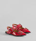 On the go? Slip on these faux leather flats for a trendy look that's always effortless! They feature a closed pointed toe. dual grommet buckle accent straps for an edgy flair. and an open ankle with a strap. Complete the look with sunglasses for any plans!