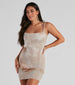 This trendy neutral tie-dye mini dress will step up your casual summer looks. It features a sleeveless scoop neckline. dual spaghetti straps that lead to a cross-back. strappy design. and a short. curve-hugging. bodycon silhouette. The brushed knit fabric offers plenty of stretch. Style with chic mules.