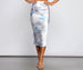 Stay on trend with a pretty tie-dye skirt! The skirt features a high-rise waist. a tie-dye print. and a midi-length silhouette. The skirt is composed of a satin fabric that offers a form hugging fit with minimal stretch. Complete look with a crop top and clear mules.