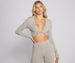 Keep it cozy in a trendy twist top for your next day in lounging this season. The top features a plunging V-neckline with a twist knot accent. long sleeves. and a cropped hem. Complete your look with the matching high waist leggings.