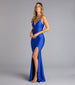 Effortless and undeniably chic. the Tricia plunge gown turns heads with a sleek silhouette and daring thigh-high slit. Designed to elongate and flatter. it's your perfect plus-one for black-tie events. galas. and every moment that calls for pure glamour.