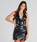 Your true essence is to shine! This metallic crop top will put the spotlight on you. It features a halter plunge V-neckline. an elasticized scrunched neck strap. an underwire bust. flexible boning and hidden hook and eye closures. and an open back. Complete the look in a fab mini skirt for a bachelorette or party!