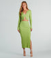 Dive into cozy rib knit love with this midi skirt! Perfect for everyday styling. this midi skirt features a high-rise elasticized waist and curve-flaunting bodycon silhouette and a side slit that shows some skin. Complete the look with the matching top.