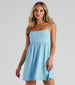 Get ready to have a total twirl-worthy moment in this adorable skater dress. It features a sleeveless square neckline. spaghetti straps that lead to a lace-up back design. a high waist seam. and a short skater skirt with a flirty fit and flare silhouette. Style this dress with your fave platform heels.