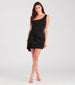 Every girl needs the chic Tyra crepe party dress to bring the charm for cocktail soirees or dressy birthdays! She features a sleeveless one-shoulder neckline. a wide shoulder strap. a padded bust. a flattering bodycon silhouette. and a wrap-style ruffled mini-length hem. The formal dress is composed of a sleek crepe fabric with a partial sewn-in knit lining and moderate stretch. Complete the look with a statement bracelet.